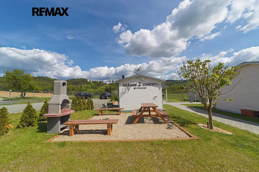 1 provozní chatka - Slouží jako zázemí recepce pro pohodlný chod resortu.