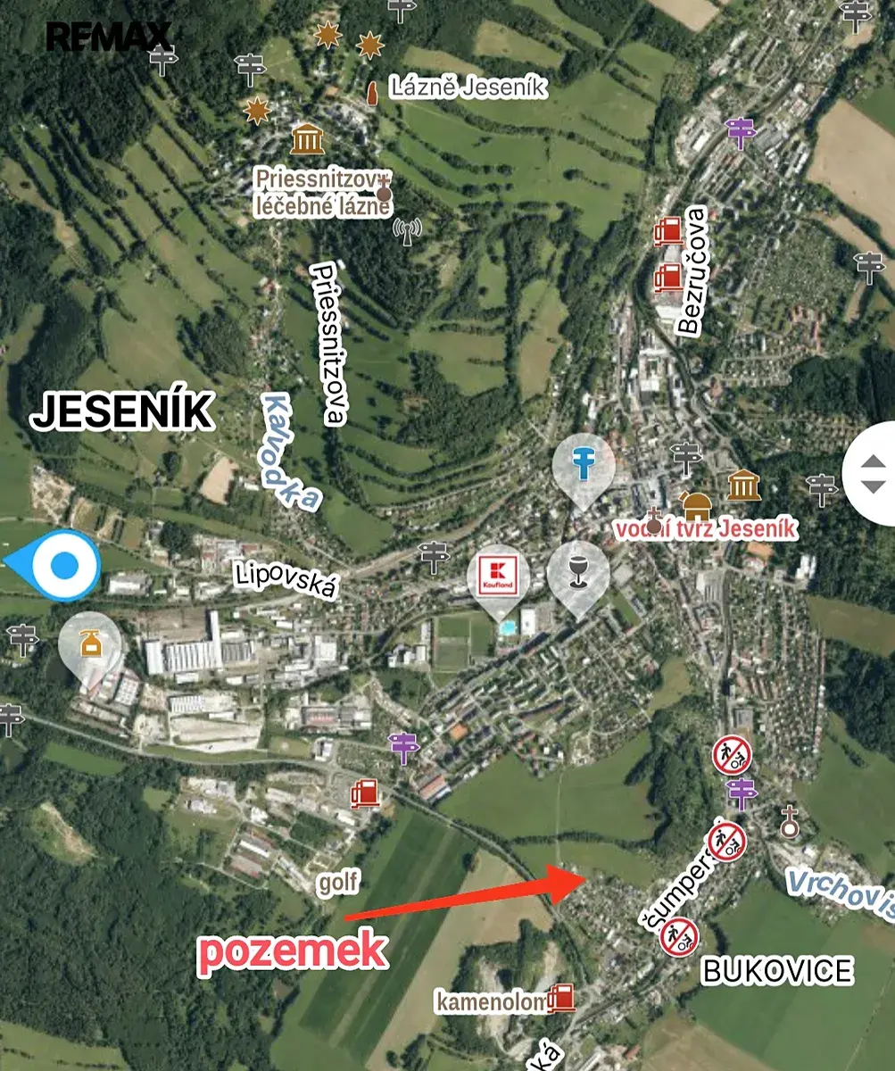 Remax vám exklusivně nabízí k prodeji slunný, mírně svažitý pozemek určený dle územního plánu k bydlení ve městě Jeseník – části Bukovice. Pozemek o celkové výměře 1330 m2 je přístupný z veřejné komunikace (ul. U Sokolovny). Veškeré sítě – voda, kanalizace, plyn jsou dostupné k pozemku (jsou pod komunikací), sítě elektro na pozemku. Do okresního města Jeseník s veškerou občanskou vybaveností jen 1,5km. Prodávající si vyhrazuje právo vybrat kupujícího na základě jím zvolených kritérií.