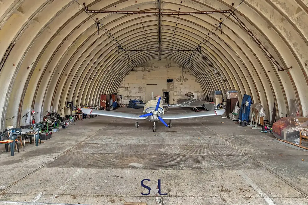 Hangár disponuje zastavěnou plochou 531 m² a díky své otevřené dispozici, vysokému obloukovému stropu a bezproblémovému přístupu nabízí široké spektrum využití – od uskladnění letadla, sbírky vozidel a techniky až po skladové, servisní nebo firemní zázemí.