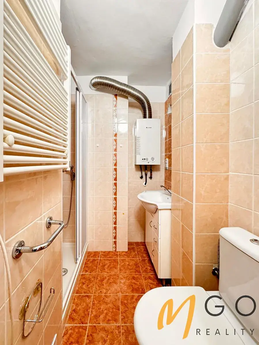 koupelna se sprchovým koutem a vlastním plynovým ohřevem vody