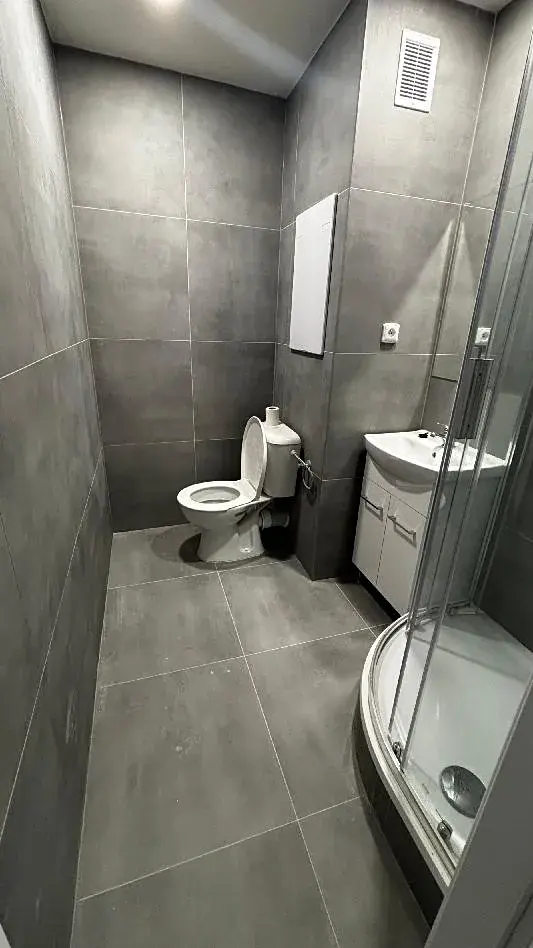 V Koupelně je sprchový kout a je společná s WC.