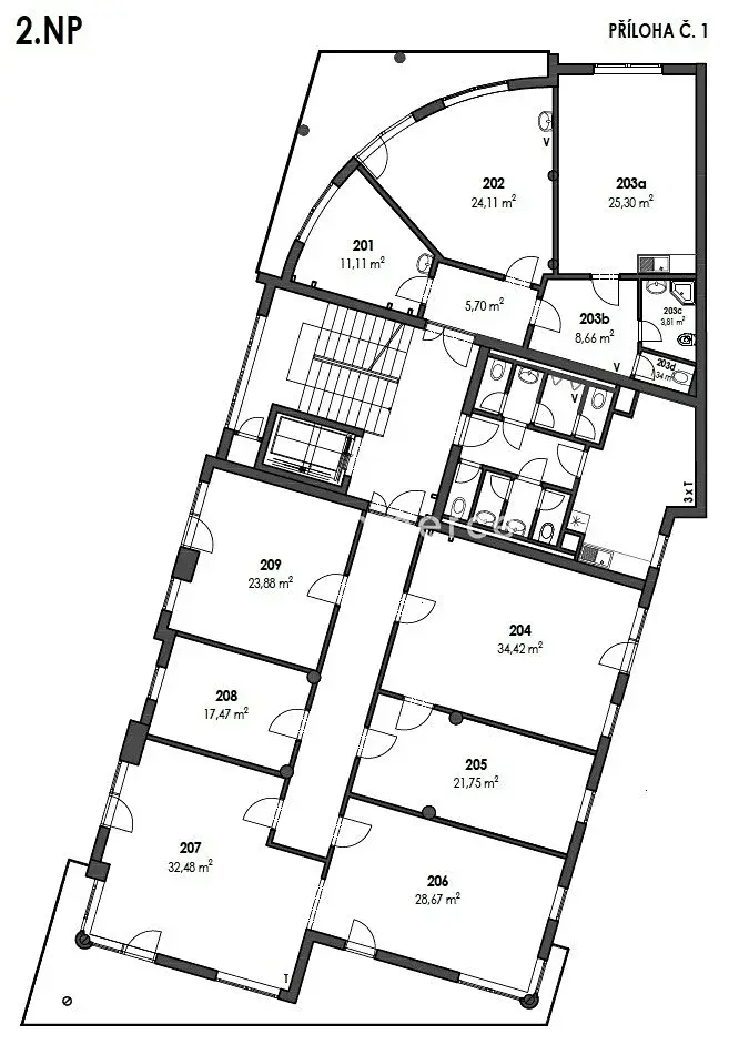 V přiloženém půdorysu se jedná o kanceláře 206+207 a terasu.
