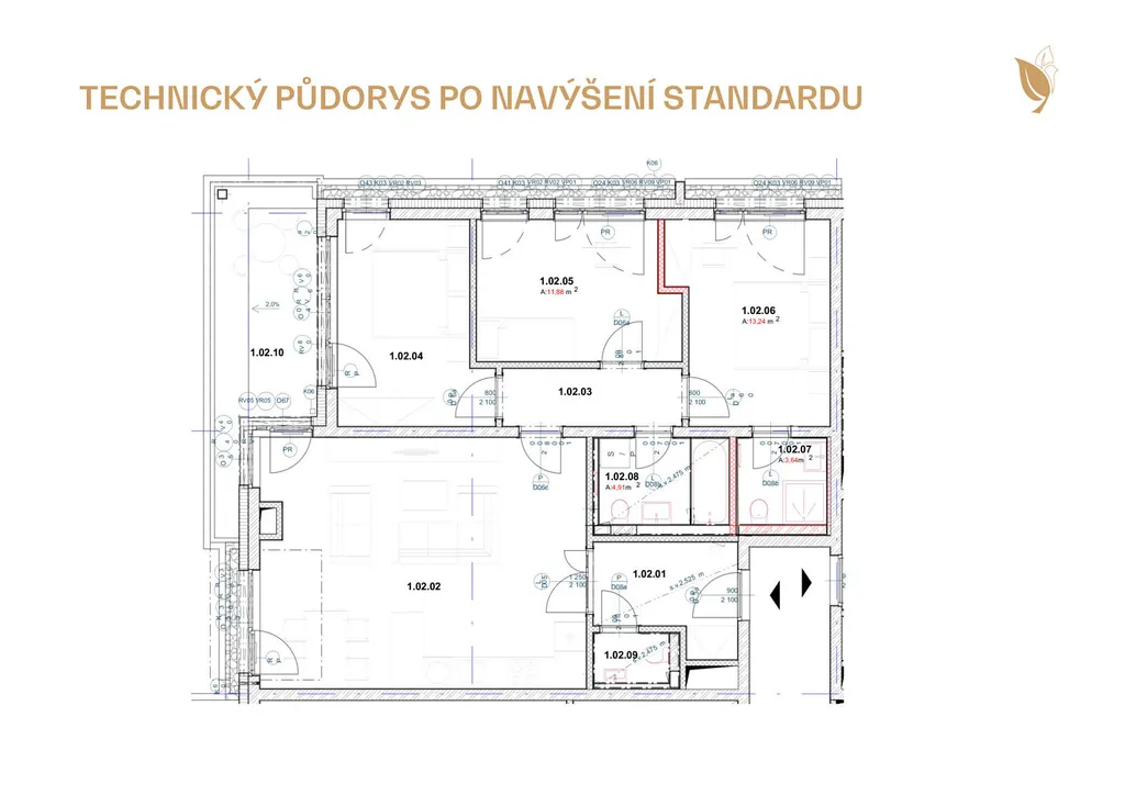 - prémiový standard provedení: velkoformátové obklady a dlažba Savoia Italia, designová sanita Laufen (již v ceně bytu)