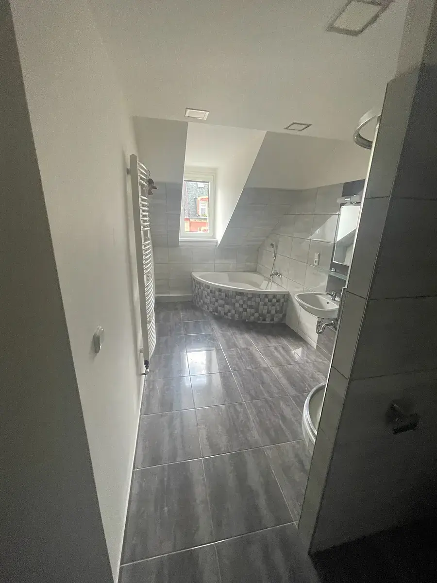Pronajmeme kompletně zrekonstruovaný podkrovní byt ve čtvrtém patře cihlového domu v centru Karlových Varů - v ulici Moskevská. Neplatíte žádnou provizi a jsme přímým vlastníkem. Bytová jednotka je dispozičně řešena jako 2+1 a skládá se z velkého obývacího pokoje, samostatné kuchyně s jídelnou, prostorné koupelny s vanou i sprchovým koutem a dalšího menšího pokoje. Ohřev vody a vytápění zajišťuje vlastní plynový kotel.