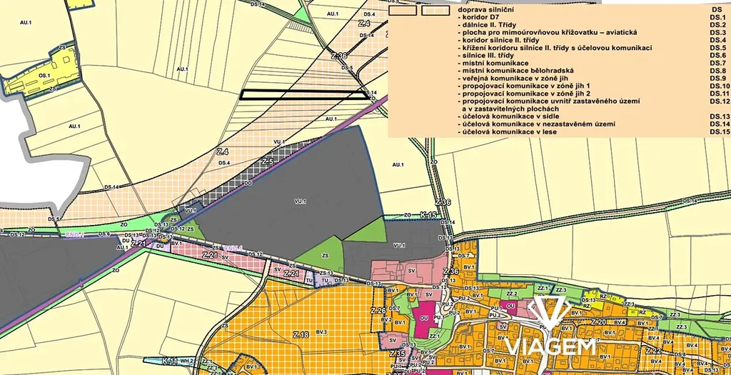 Pozemek je v územním plánu (Zásady územního rozvoje) definován jako koridor pro budoucí silnici II/240 – zásadní nadmístní propojení dálnic D7 a D8.