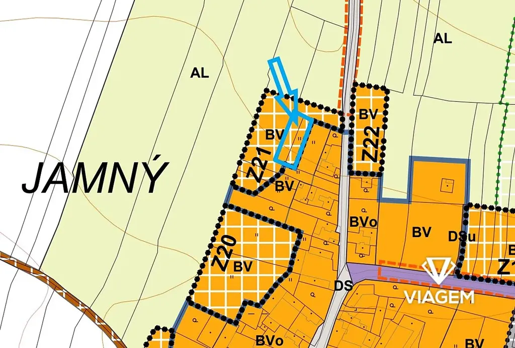 Dle platného územního plánu obce jsou pozemky zařazeny do ploch BV – bydlení v rodinných domech (venkovské), což umožňuje výstavbu rodinného domu odpovídajícího charakteru venkovské zástavby.