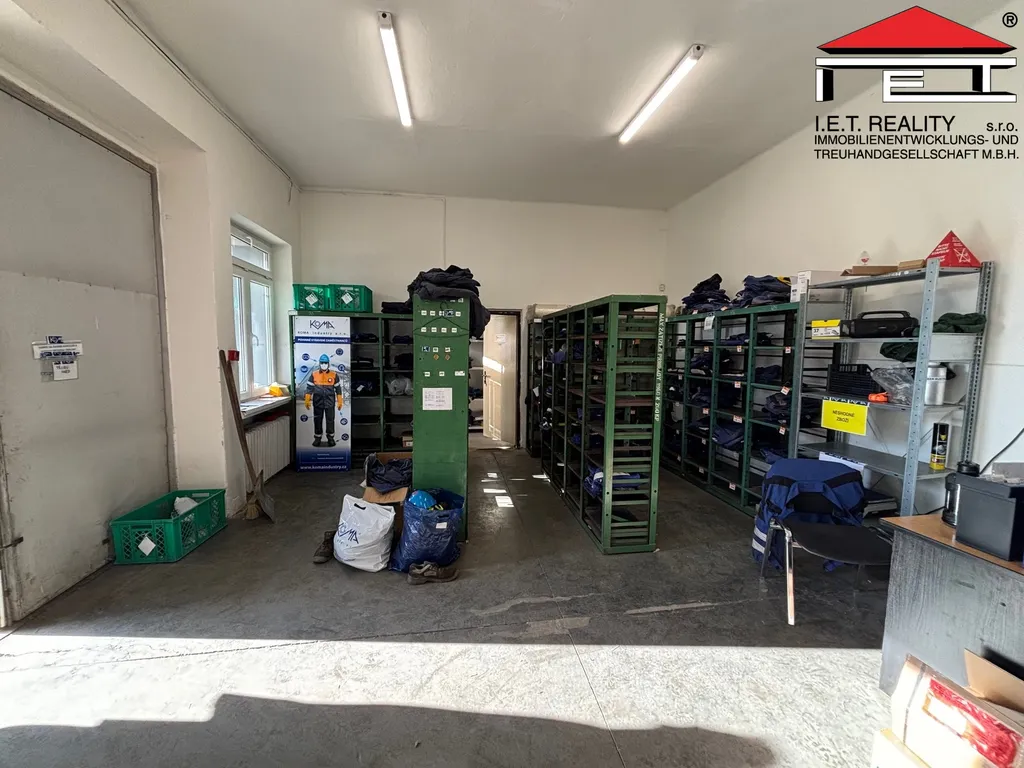 (dílna, kde součástí je malá kancelář, denní místnost (šatna) a sociální zázemí