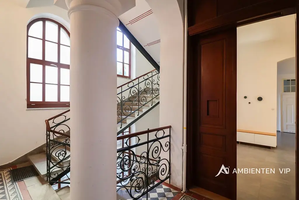 Byt o celkové podlahové ploše 143,49 m² se nachází v 2. nadzemním podlaží a nabízí velmi prostorné místnosti s vysokými stropy, které dodávají interiéru vzdušnost a reprezentativní charakter. Celý prostor zároveň nese jedinečný genius loci tohoto domu. Prostory bytu jsou kompletně zařízené a připravené k okamžitému nastěhování.