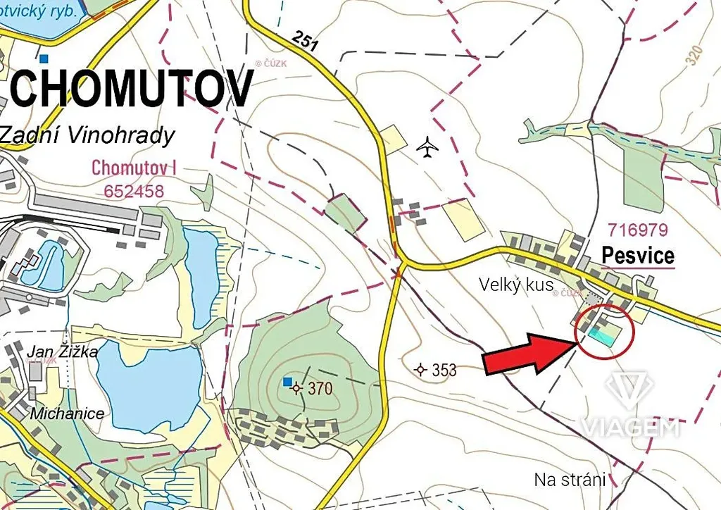 V exkluzivním zastoupení majitele nabízíme pozemek v zastavitelném území obce o výměře 6 841 m² v klidné okrajové části obce Pesvice, okres Chomutov.