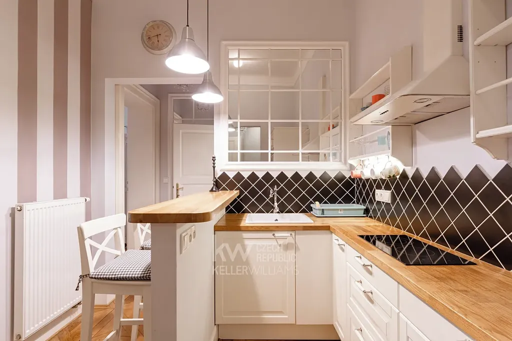 Nedávná rekonstrukce, krásné kazetové parkety, či vysoké stropy, to je jen zlomek toho, co tento byt nabízí. Kromě plně vybavené kuch. linky kombinované s obývacím pokojem, se zde nachází i dvě oddělené ložnice. Každá ložnice je vybavena manželskou postelí, skříní a skříňkami. V koupelně se nachází sprchový kout a pračka kombinovaná se sušičkou.