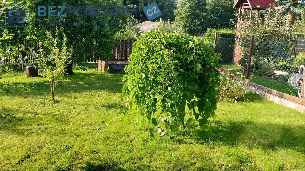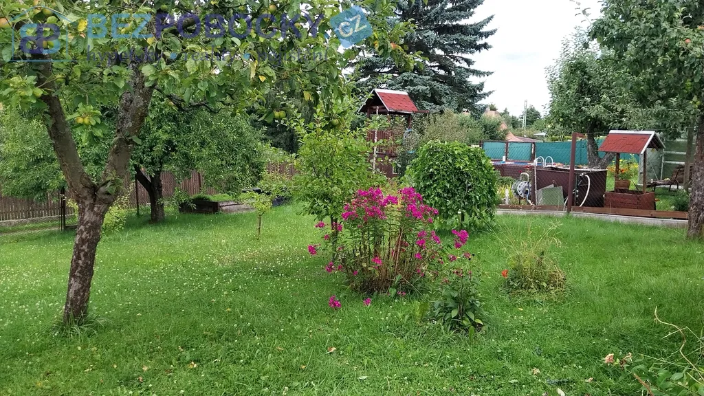 Součástí prodeje je udržovaný pozemek se zahradou, na které se nachází okrasná skalka, vzrostlé jabloně, švestka a další stromy. Na zahradě je také praktická bouda na nářadí.