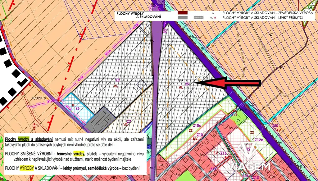 Pozemek se nachází v území, které je součástí návrhu pro rozvoj lehké výroby a skladovacích kapacit. Tento aspekt výrazně zvyšuje jeho investiční potenciál do budoucna.