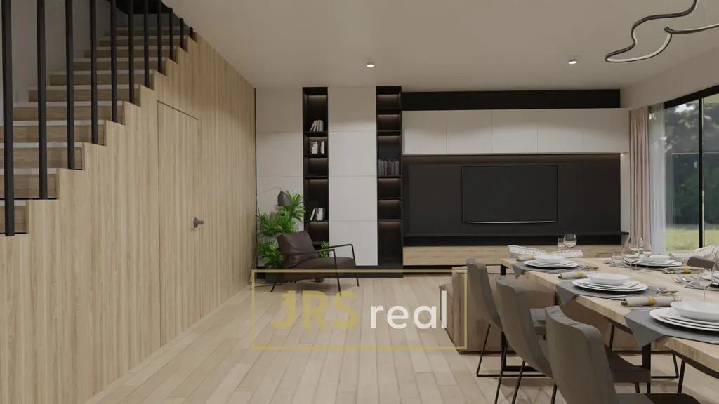 Velký důraz je kladen na moderní technologie a nízké provozní náklady. Dům je navržen jako energeticky úsporný s přípravou na instalaci fotovoltaické elektrárny (FVE). Součástí je také retenční nádrž na dešťovou vodu, kterou lze využít pro chod domácnosti i závlahu zahrady. Tepelné čerpadlo Buderus zajišťuje ohřev vody i teplovodní podlahové vytápění v celém domě, což oceníte v každém ročním období. Komfort bydlení dále zvyšuje rekuperace vzduchu a příprava na klimatizaci.