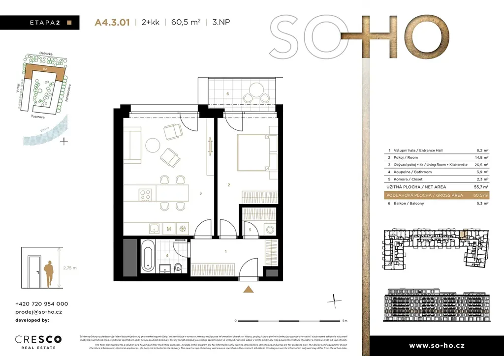 Více informací o tomto bytě, projektu a aktuální nabídce bytů z 2. etapy najdete na webových stránkách projektu. Rádi vás přivítáme také v našem prodejním centru: