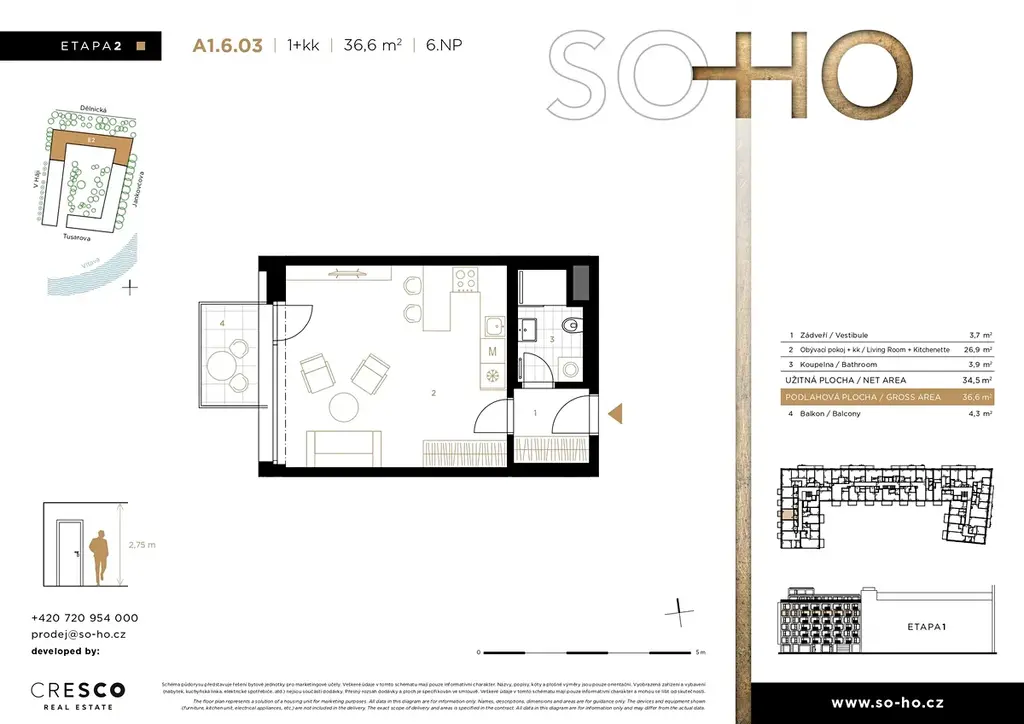 Více informací o tomto bytě, projektu a aktuální nabídce bytů z 2. etapy najdete na webových stránkách projektu. Rádi vás přivítáme také v našem prodejním centru: