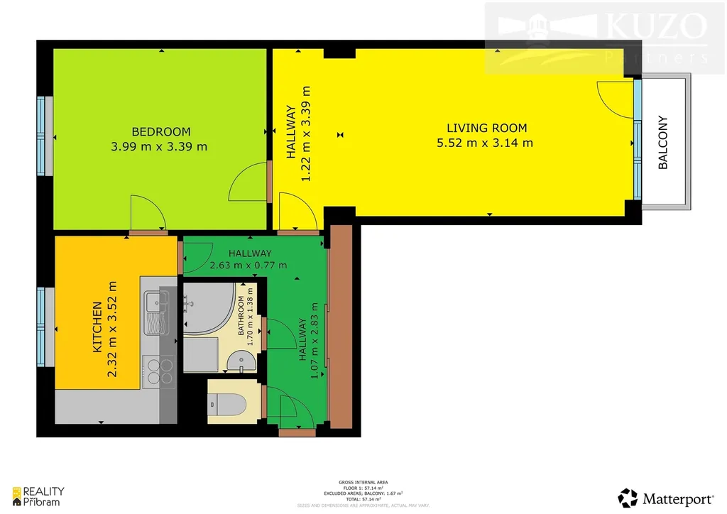 Díky laserovému zaměření víme, že byt nabízí velkorysých 57 m² užitné plochy, což pocítíte na vzdušnosti všech místností.