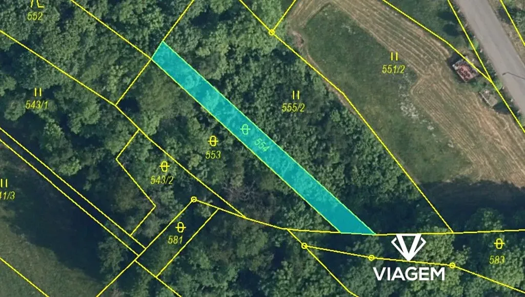 Parc. č. 545 – Celková výměra: 381 m² / Podíl: 191 m² / Les / Souřadnice: 50.657056042, 15.273186914