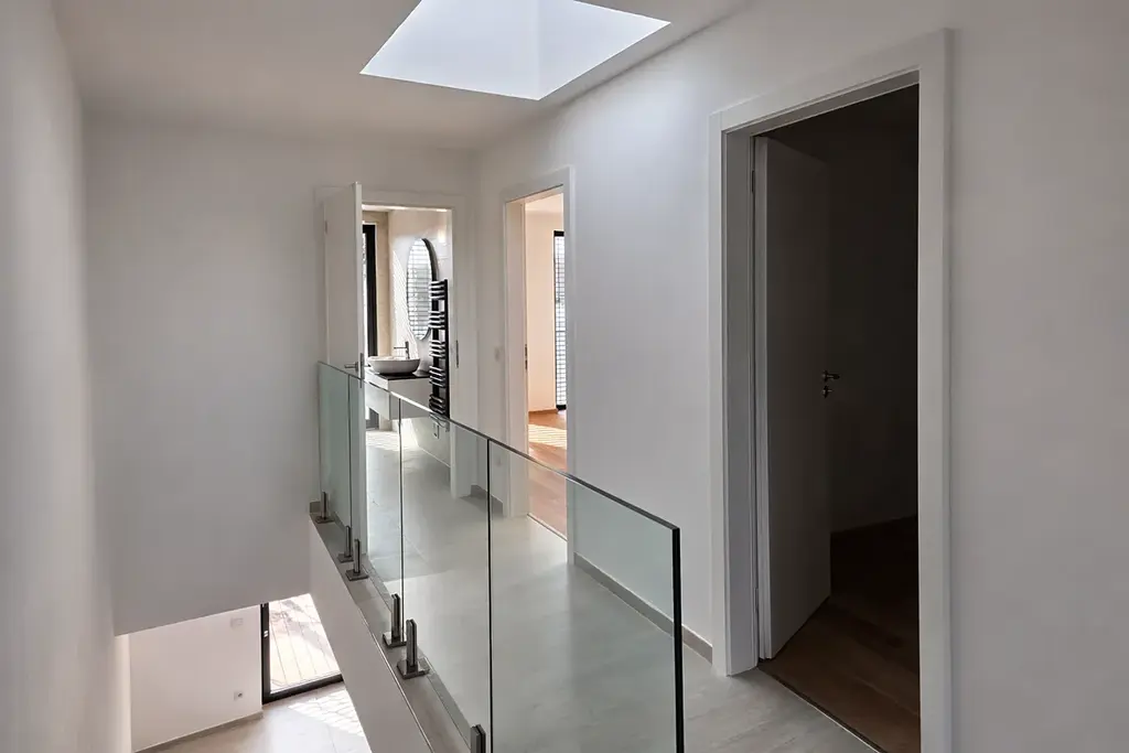 - moderní skleněné zábradlí na schodišti