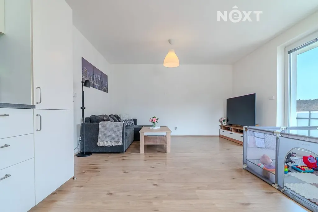 Nabízíme k prodeji prostorný a světlý byt o dispozici 3+kk s balkonem a sklepem, který se nachází ve 3. nadzemním podlaží moderní novostavby z roku 2020 v klidné části městyse Jince, v ulici Zborovská.