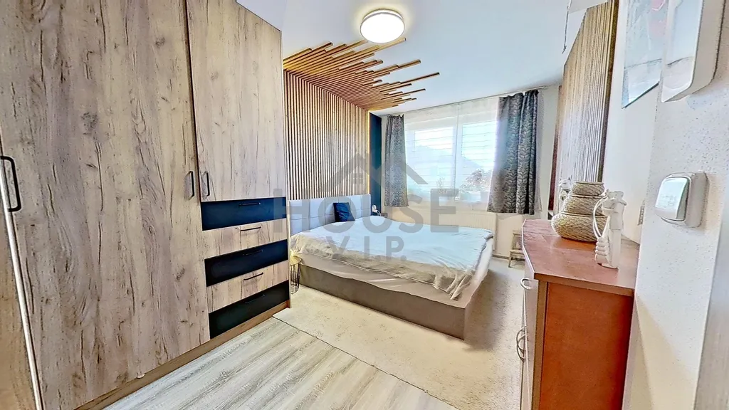 Byt byl dokončen v roce 2018 a je ve velmi dobrém technickém stavu. Dispozice nabízí obývací pokoj s kuchyňským koutem, ložnici s pracovním koutem, prostorný dětský pokoj, dvě koupelny (vana i sprchový kout) a komoru (3 m²). Velkým benefitem je pochozí půda o výměře cca 40 m², která poskytuje dostatek úložného prostoru. Okna jsou orientována na jihovýchod.