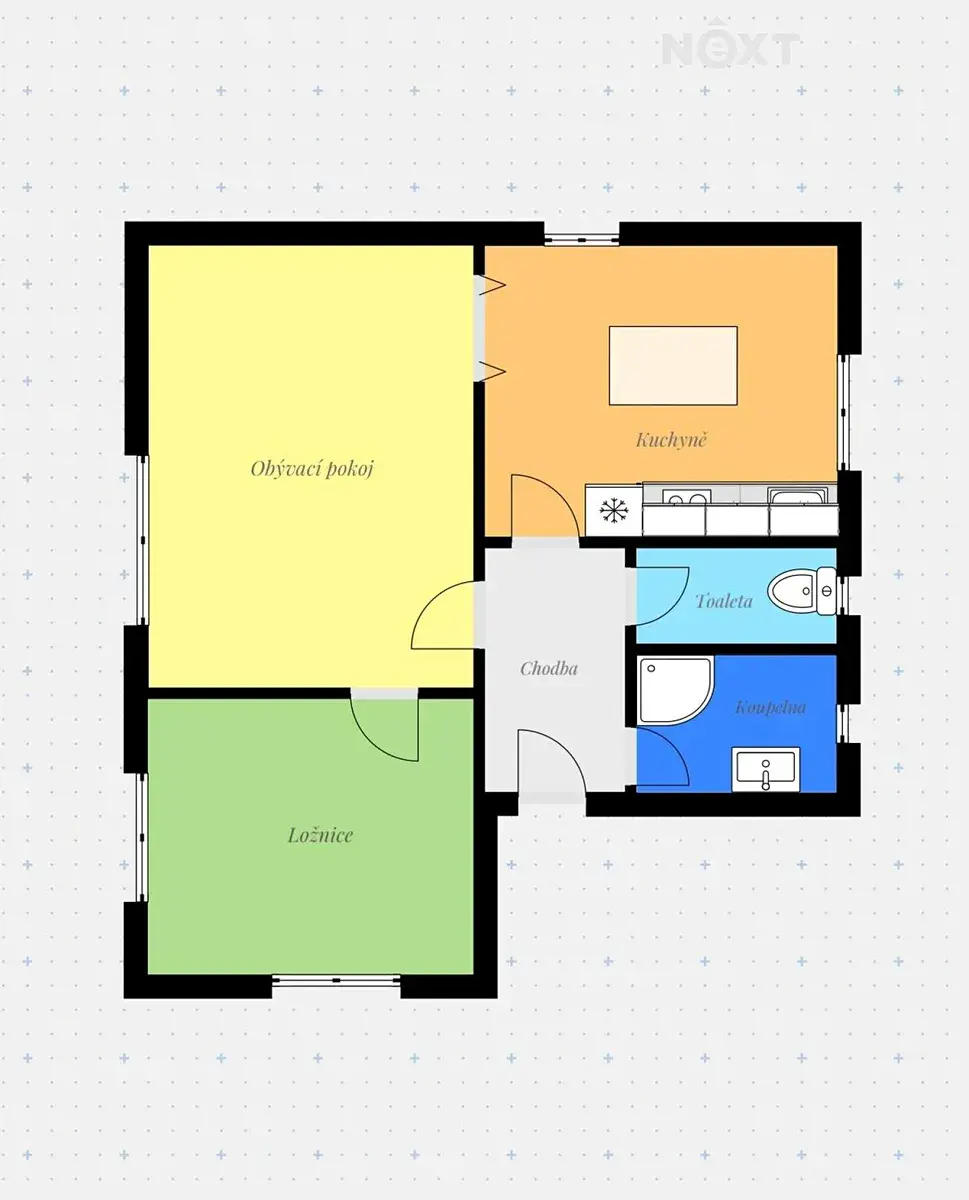 Dispozice bytu zahrnuje kuchyň s jídelnou, obývací pokoj, ložnici, samostatné WC a koupelnu se sprchovým koutem. V rámci kompletní rekonstrukce byla v celém bytě provedena nová elektroinstalace včetně rozvaděče, nové rozvody, nové stěrky a omítky, položeny nové podlahy a dlažby. Součástí rekonstrukce je také nová kuchyňská linka včetně spotřebičů, která nabízí dostatek úložného prostoru a zajišťuje plnohodnotné a komfortní zázemí pro každodenní bydlení. Byt působí svěže, moderně a je připraven k okamžitému nastěhování bez nutnosti dalších investic.