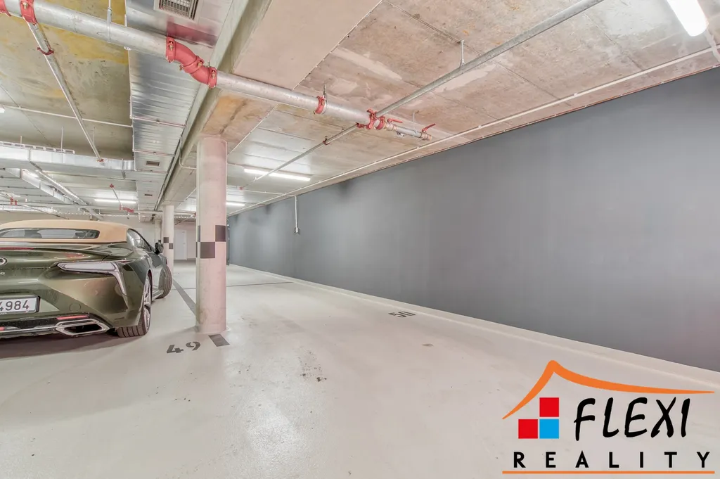 K dispozici vlastní, parkovací stání v podzemní garáži za poplatek 1.500,-Kč (byt lze pronajmout i bez něj) a prostorná, sklepní kóje.