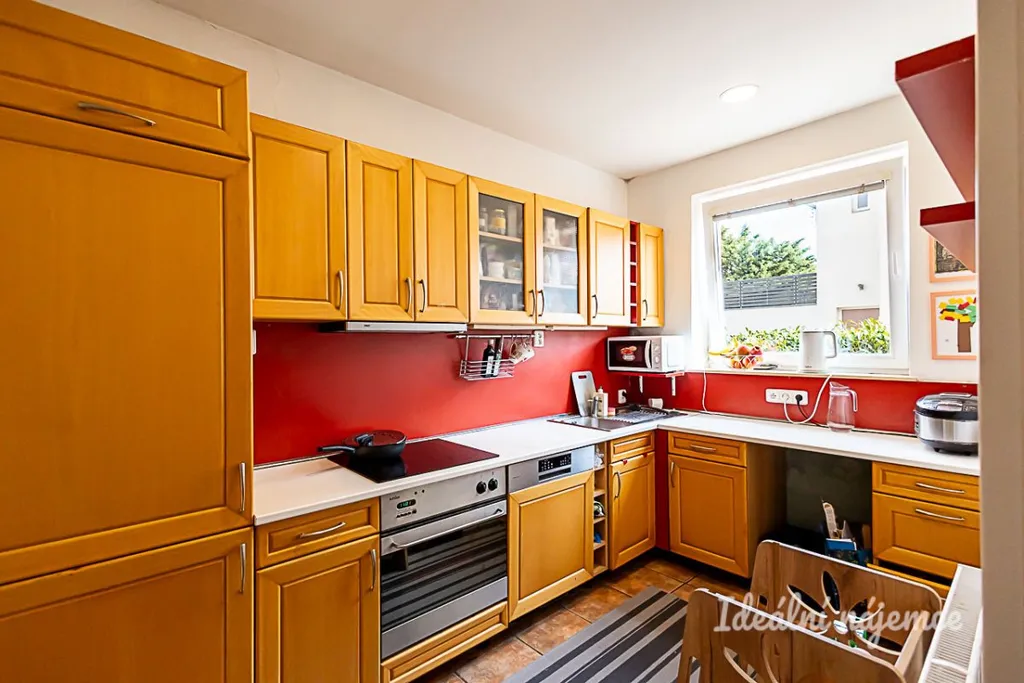 Interiér je nabízen jako plně vybavený, takže se můžete rovnou nastěhovat bez starostí s nákupem nábytku či spotřebičů. Srdcem domova je moderní kuchyně, ve které nechybí lednice s mrazákem, myčka, elektrická i mikrovlnná trouba a varná deska s digestoří. Na kuchyni navazuje prostorná hlavní obytná místnost s pohodlnou sedací soupravou a příjemným jídelním koutem. Další dvě samostatné místnosti jsou aktuálně prakticky rozvrženy jako ložnice a dětský pokoj, skvěle však poslouží i jako pracovna. Koupelna s vanou a pračkou je oddělena od toalety, což zajišťuje maximální soukromí všech členů domácnosti.
