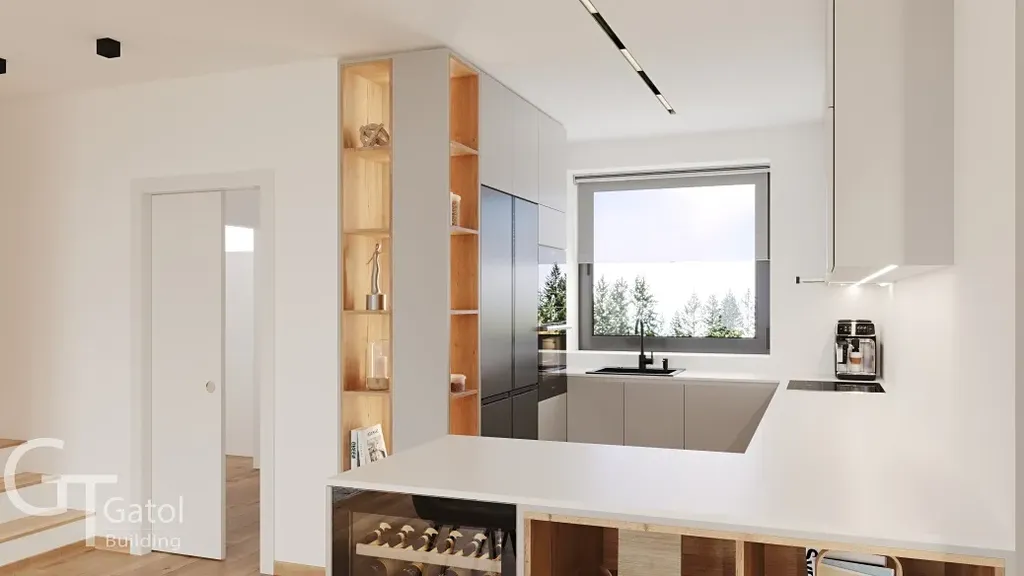 Dům je vybaven garáží s jedním parkovacím místem a dalším parkováním pro dva vozy před domem, což zajišťuje pohodlné parkování i pro větší rodinu nebo návštěvy. Bezbariérový přístup je samozřejmostí, což zvyšuje komfort a dostupnost pro všechny členy domácnosti. Výhodou je také jeho umístění v zástavbě pro bydlení, které se pyšní klidnou atmosférou s dobrou dopravní dostupností, ať už prostřednictvím vlaku, dálnice, silnice či autobusu.