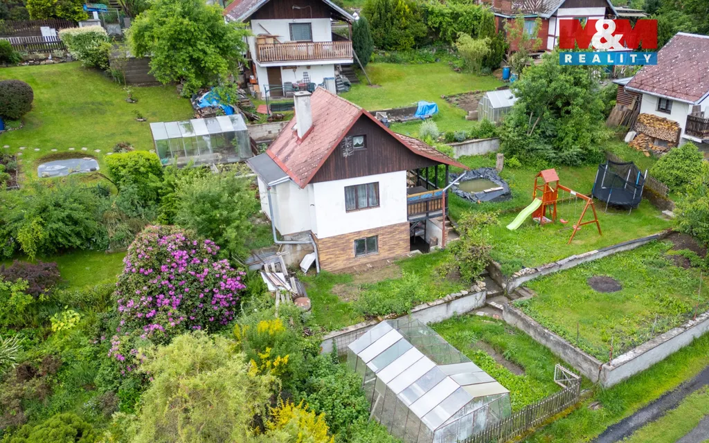 Terasovitý pozemek nabízí skleník, udržovaný trávník, dětskou prolézačku i romantické jezírko. Ideální místo pro rodinu, relax i víkendové úniky z města. Krytá terasa zve k ranní kávě i večernímu grilování, podkroví pak poskytne pohodlné přespání.