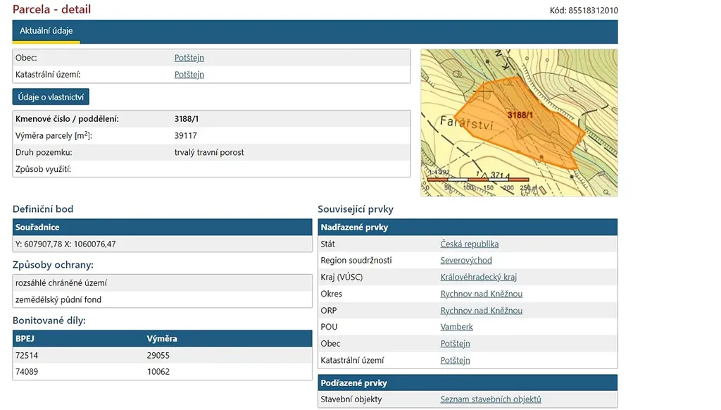 Prodej louky, Potštejn, 52202 m2 (ID: 4232174)