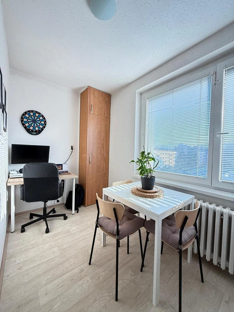 Byt se nachází v posledním, 4. patře nízké zástavby bez výtahu, díky čemuž si užijete maximum klidu, soukromí a žádný hluk od sousedů nad vámi.