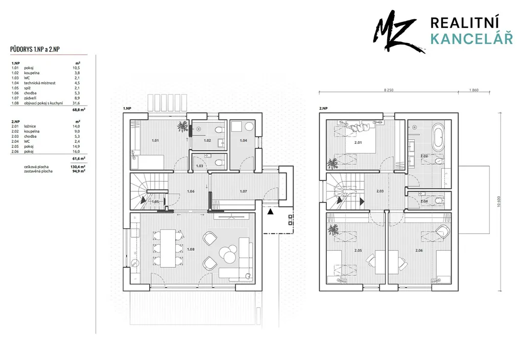 Stylová dvoupodlažní dřevostavba 5+KK se nachází na pozemku o výměře 1 098 m², užitná plocha činí 131 m², zastavěná plocha domu je 94,9 m² a je připravena ihned k předání.
