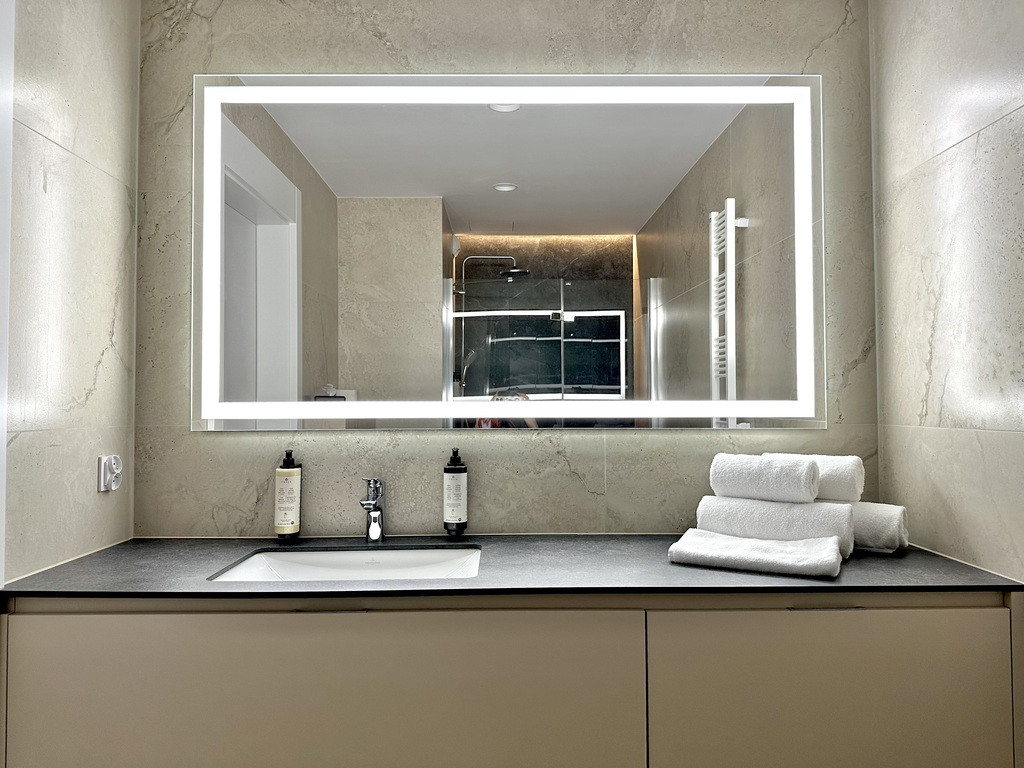 Prvotřídní design: Interiér je dokončen v nejvyšším standardu s použitím prémiových materiálů a moderních technologií (klimatizace, podlahové vytápění).