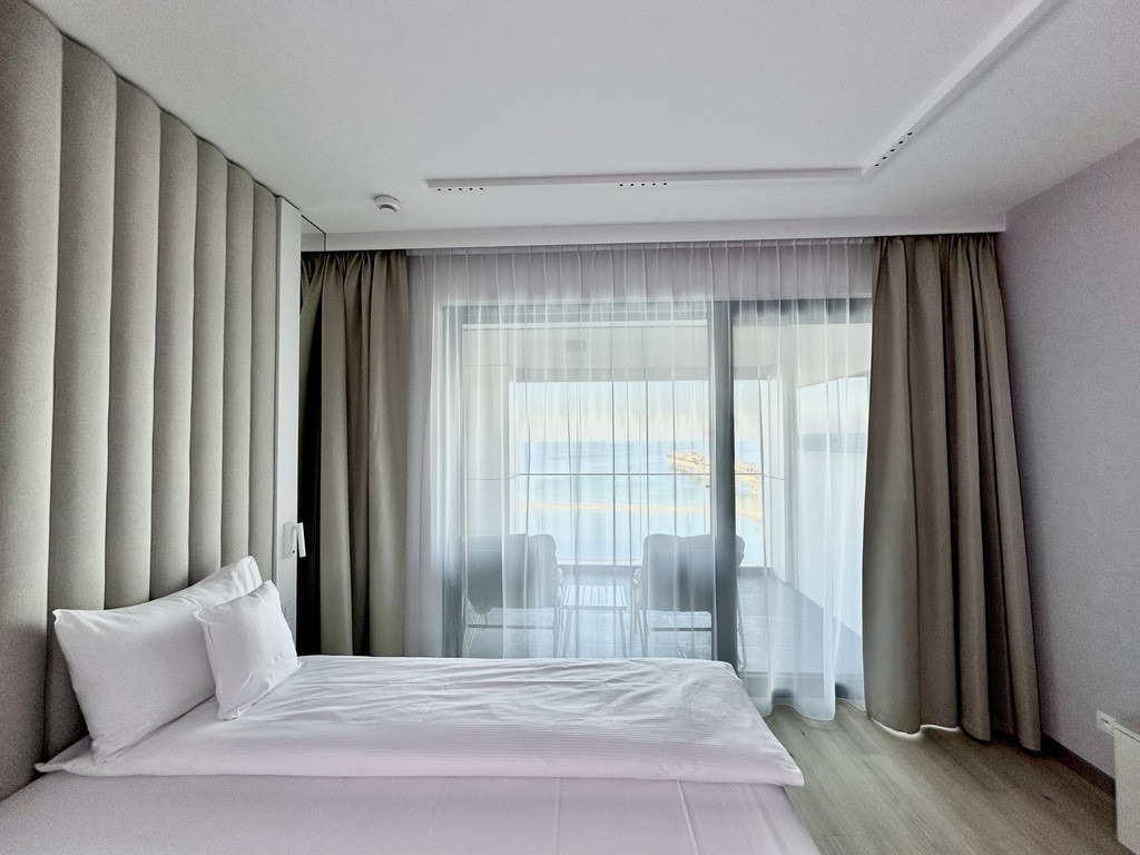 Terasa: Velká terasa přístupná z pokojů nabízí přímý kontakt s mořským vzduchem a atmosférou letoviska.