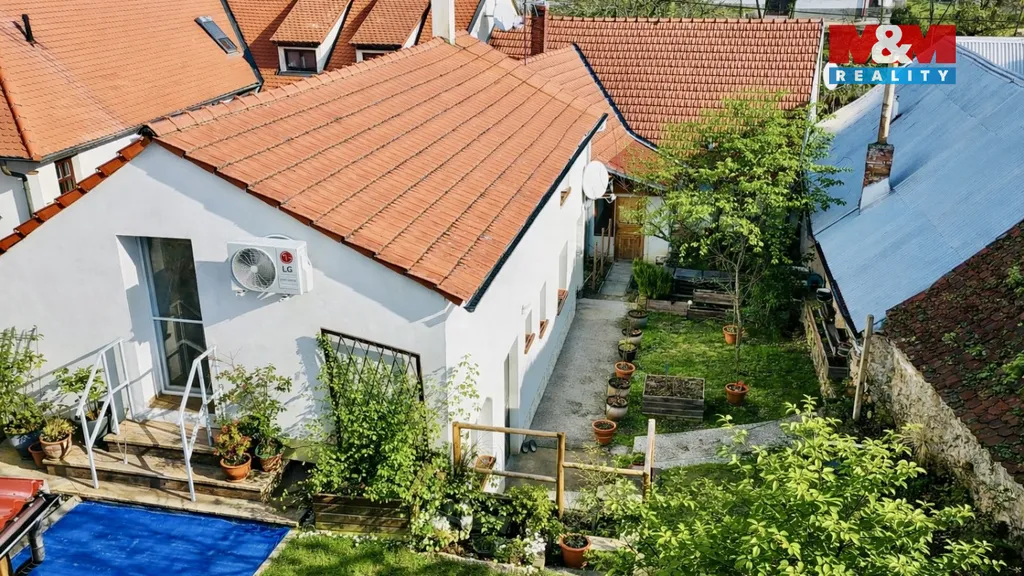 Dominantou nemovitosti je uzavřený, prosluněný dvůr, který nabízí naprosté soukromí a bezpečné prostředí pro děti. Najdete zde pergolu s příjemným venkovním posezením, ideální pro rodinné oslavy, grilování i každodenní relaxaci. Tento prostor se stane přirozeným centrem rodinného života.