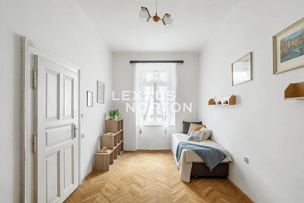Nabízíme prostorný družstevní byt o dispozici 4+1 ve druhém podlaží s celkovou plochou 120 m², který vznikl propojením dvou jednotek. Činžovní dům se nachází v klidné ulici přímo nad parkem Pod Korábem a z oken si můžete vychutnat panoramatický výhled na naše hlavní město.