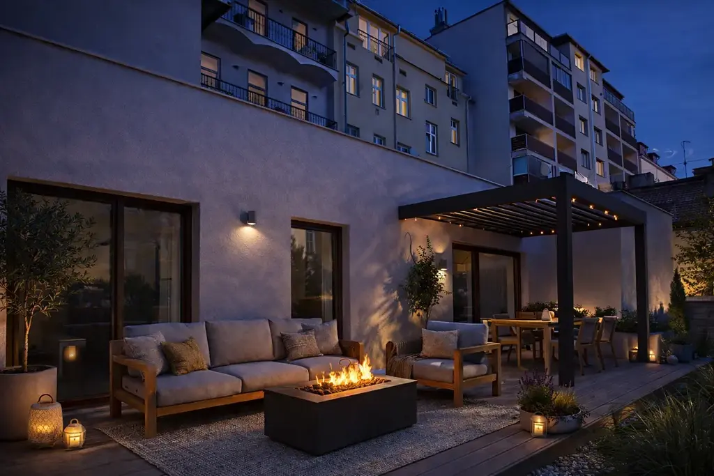 Projekt nabízí moderní městské bydlení s atmosférou rodinného domu. Otevřený obývací prostor s kuchyňským koutem přirozeně propojuje interiér s venkovní terasou a zahradou, která poskytuje ideální místo pro relaxaci, grilování či posezení s přáteli.
