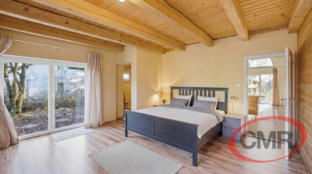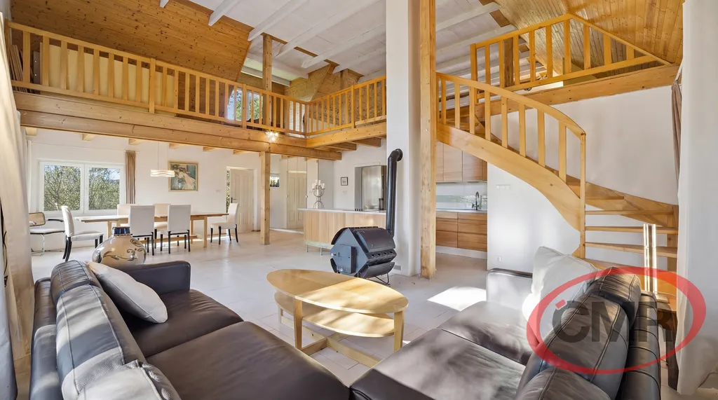 Nabízíme k prodeji jedinečnou nemovitost v klidné, vyhledávané lokalitě nedaleko Prahy, Malá Hraštice, okres Příbram obklopenou krásnou přírodou a vzrostlými stromy. Tento stylový, nadčasový objekt stojí na vlastním velkorysém pozemku o rozloze 4071 m2, který zajištuje soukromí a prostor pro relaxaci. Dominantou domu je vzdušný otevřený obytný prostor s vysokými stropy, dřevěnými prvky a galerií, která dodává interiéru jedinečný charakter. Velkoformátová okna a francouzské dveře krásně propojují interiér se zahradou a zajišťují dostatek přirozeného světla. V zadní části je samostatná prostorná ložnice se šatnou a vstupem na zahradu a koupelna s vanou, bidetem a WC. Z obývacího pokoje je vstup na terasu orientovanou do zeleně ideální pro posezení s rodinou či přáteli. Okolní lesy a příroda přímo vybízejí k procházkám, odpočinku i aktivnímu trávení volného času. Nemovitost představuje ideální kombinaci klidného bydlení nebo rekreaci v přírodě s dobrou dopravní dostupností do Prahy. Velkou výhodou je přímé spojení vlakem do Prahy na hlavní nádraží, busem, autem cca 30 - 40 min. Veškerá občanská vybavenost je v nedalekém Mníšku pod Brdy. Vřele doporučuji prohlídku.