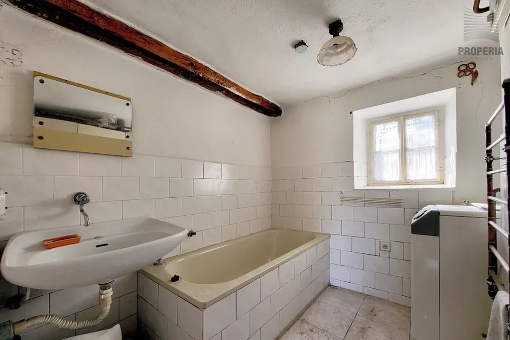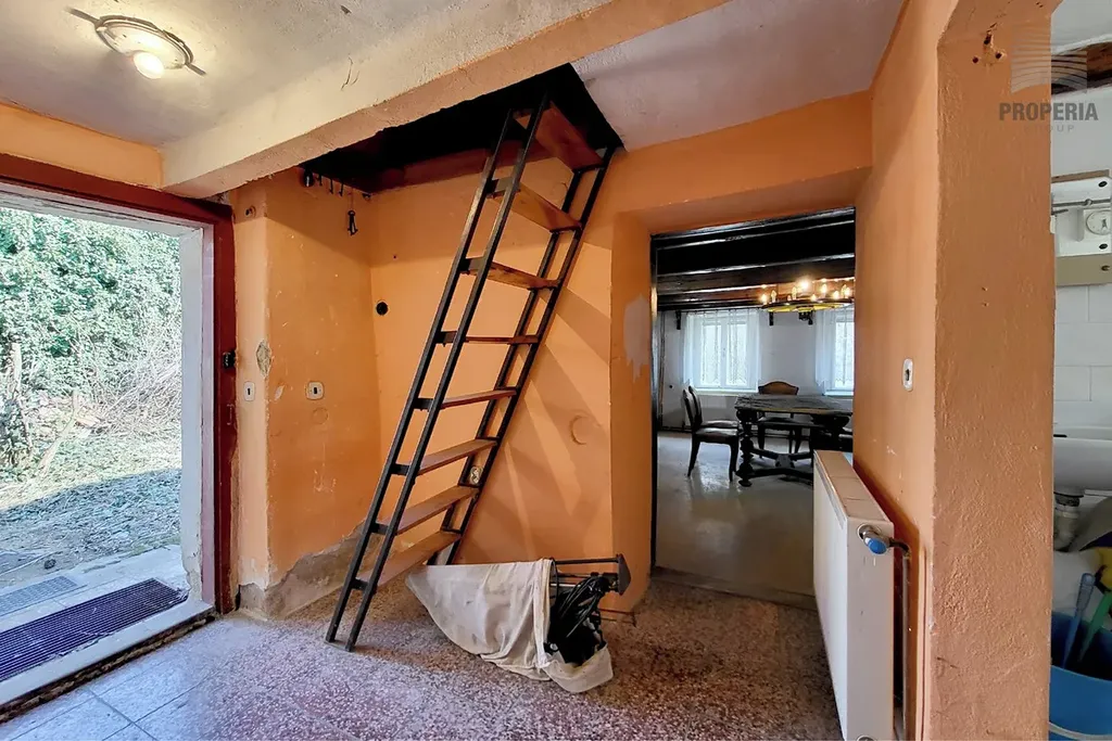Vstupte do interiéru, který dýchá původním kouzlem. Najdete zde betonové podlahy a již rozvedené ústřední topení, které zajistí teplo v celém domě včetně podkroví. Dispozice je promyšlená a velmi rozumná, kdy vše, s výjimkou toalety, je pohodlně dostupné z centrální předsíně či chodby. Přízemí nabízí plochu kolem 44 m², zatímco podkroví 51 m². Celková užitná plocha tak dosahuje cca 95 m².