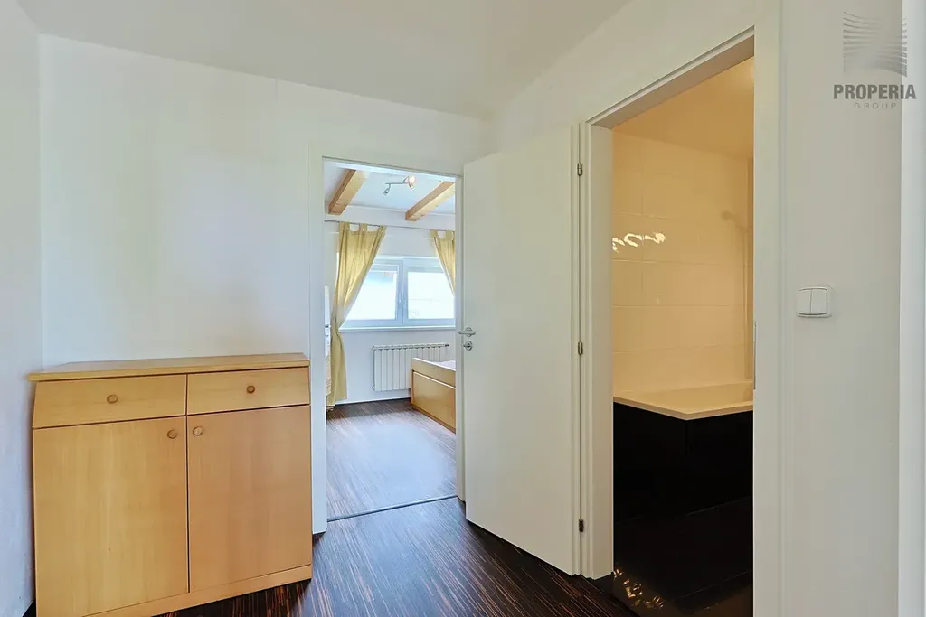 Byt je součástí dvouúrovňové jednotky – aktuálně slouží jako horní patro, a proto zde není kuchyňská linka, ale přípojky pro elektřinu, vodu a odpad jsou připraveny. V případě zájmu lze byt snadno upravit k plnohodnotnému samostatnému bydlení.