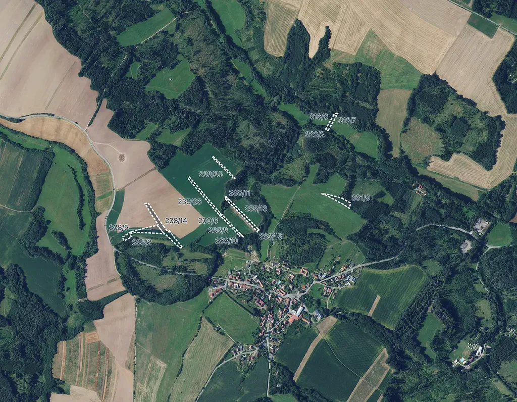 -> parc. č. 238/2, 238/5, 238/14, 238/26, 238/35, 239/6, 283/10, 283/15, 285/8, 285/13, 288/11, 312/7, 316/3, 322/2, 331/9 (LV 316)