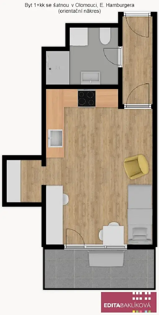 Pronájem bytu 1+kk, Olomouc, Eduarda Hamburgera, 33 m2