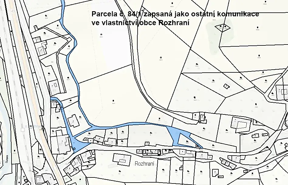 Příjezd na pozemek je možný z jedné strany po obecní komunikaci na parcele č. 84/1 a také z druhé strany po soukromé vyjeté cestě, na které je věcné břemeno chůze a jízdy pro dotčené okolní pozemky.