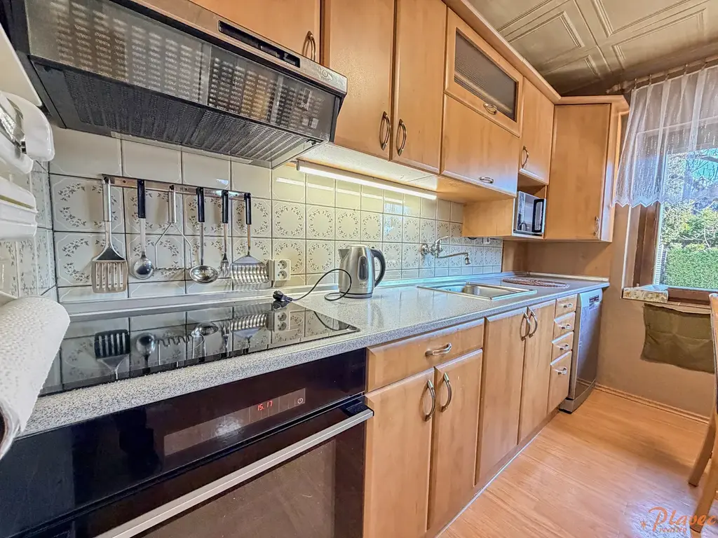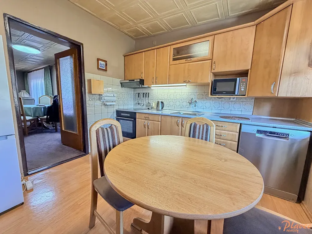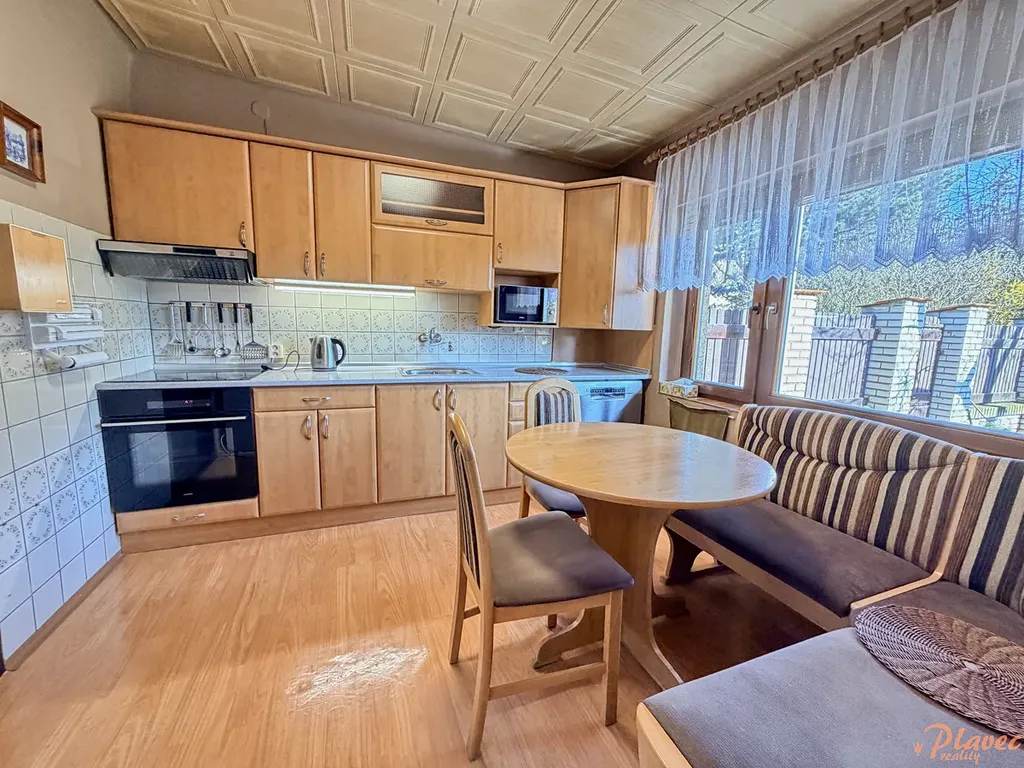 Byt se nachází v přízemí domu se 2 samostatnými bytovými jednotkami. Vytápění zajišťuje plynový kotel, ohřev vody plynový bojler (obojí je samostatné pro každou jednotku), okna jsou dřevěná Eurookna. Byt je vybavený dle fotografií, mimo jiné: kuchyňská linka s elektrickou troubou, mikrovlnkou, lednicí GORENJE, myčkou BOSH, dále pračkou, sušičkou, vysavačem, televizí.