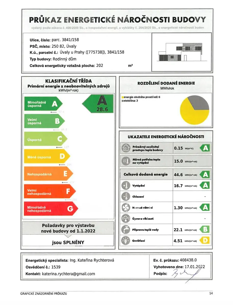• Energetická třída A – maximální úspora energií a vysoký komfort bydlení