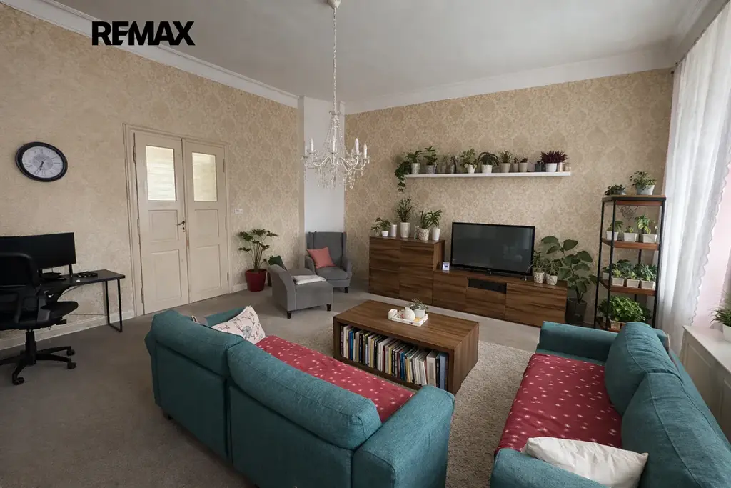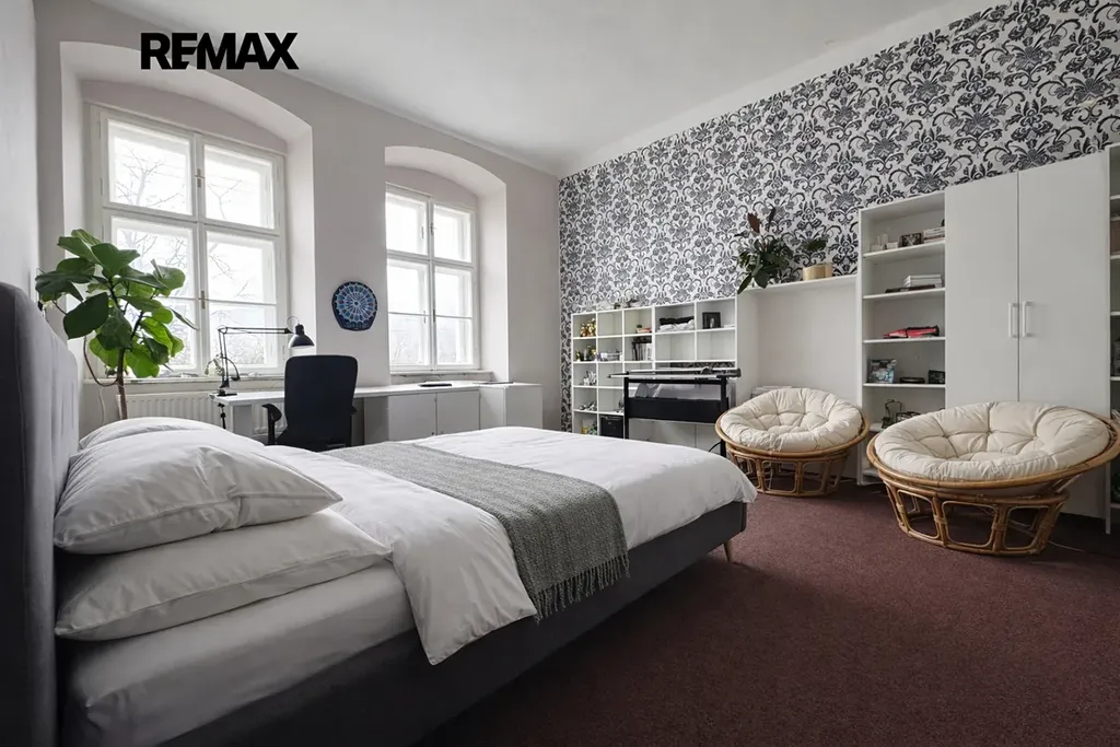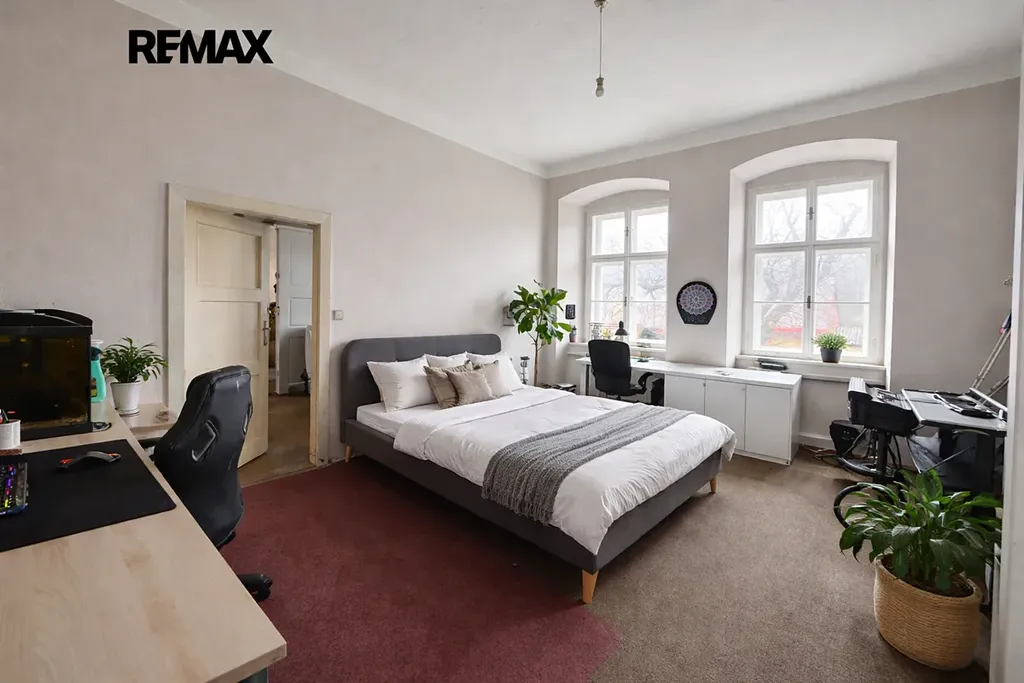 Tento byt zaujme na první pohled svými vysokými stropy a autentickými prvky, které podtrhují jeho původní empírový charakter. Dispozice bytu je praktická a nabízí dostatek prostoru pro rodinné bydlení i kombinaci s pracovním zázemím. K bytu náleží samostatný sklep o výměře 28m2 a samostatná technické zázemí o výměře 30m2, nacházející se v přízemí domu a sloužící jako dílna nebo úschovna kol, dřeva,..