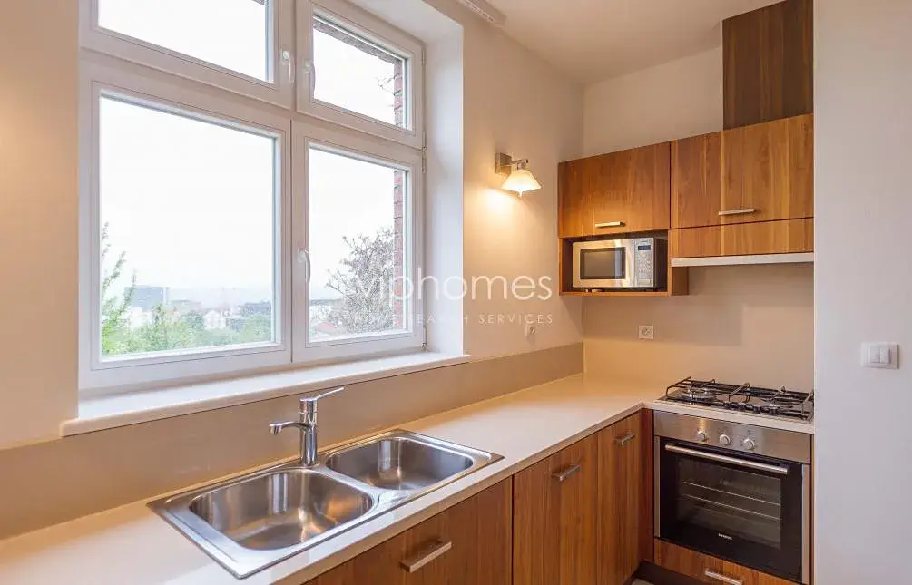 Nabízíme k pronájmu plně zrekonstruovaný podkrovní byt s balkonem a garážovým stáním situovaný ve druhém patře rezidenční prvorepublikové vily v prestižní rezidenční čtvrti Praha 6 - Ořechovka. Exkluzivní vilová čtvrť Ořechovka s jedinečnou architekturou a neopakovatelnou atmosférou se vyznačuje klidnou atmosférou a množstvím městské zeleně, zároveň ale nabízí snadnou dostupnost centra Prahy i mezinárodního letiště Václava Havla. Vila je situována v blízkém dosahu Pražského hradu a stanic metra Dejvická a Hradčanská; četné tramvaje do všech částí metropole. K dalším přednostem této lokality patří široká nabídka služeb v okolí, a to včetně mezinárodních škol, školek, obchodů.