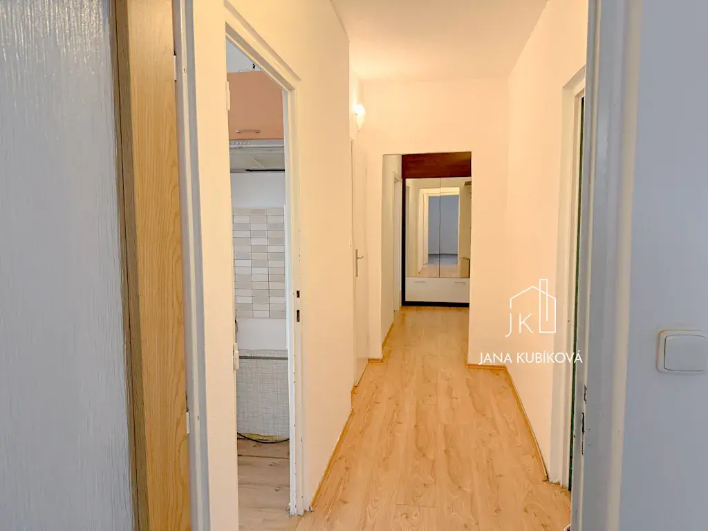 Byt je velmi prakticky řešený a nabízí dostatek prostoru pro rodinu i jednotlivce, kteří ocení samostatné pokoje a dostatek úložných možností.