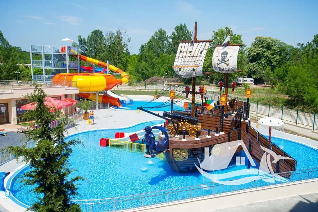 dva venkovní bazény a dětský bazén