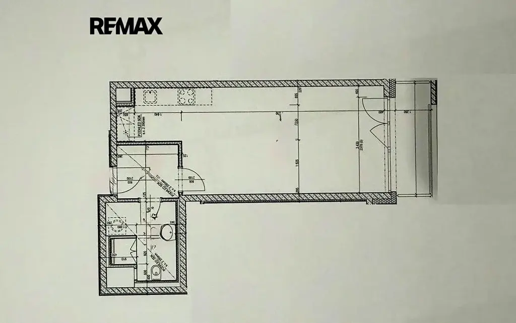 Interiér bytu tvoří obývací pokoj s kuchyňským koutem 31,6 m² a se vstupem na balkon, koupelna se sprchovým koutem a toaletou, a vstupní chodba.